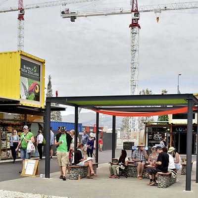 Christchurch is the largest city in the South Island of New Zealand. As it strives to recover from the devastation caused by two earthquakes, blind broadcaster Peter White has taken his microphone to the city. Local people have been asked to choose the best use for areas which have been destroyed now that the rubble has been cleared. And Peter wanders into a field of dancing Kiwis, all with headphones connected to a vast washing machine like structure. It is an open air disco - of sorts - to revive the spirit of the city and restart its pulse. Peter listens to stories of loss, but also of dramatic escapes and the sounds that continue to endure, like the trams and the trains. He explores new buildings, including a paper Cathedral and given the local appetite for dare devil adventures, he agrees to roll up his trousers in search of marine life! (Photo: Re-START Mall, which opened in the aftermath of the city's devastating earthquake in February, 2011, in central Christchurch, New Zealand. Credit: Marty Melville/AFP)