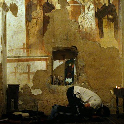 Carol Cooke Eid grew up a Christian in Lebanon. As a young woman, she felt uneasy about Islam and wanted as little as possible to do with Muslims. Yet when she began to follow a religious path and later became a nun, she found herself making an extraordinary vow: to dedicate her life to her Muslim brothers and sisters. The pledge soon turned into a deeply held love of Islam – but it turned out to be costly; Carol joined Mar Musa, a desert monastery near Damascus within striking distance of Islamic State militants. A monastery which exists to help Christians and Muslims in Syria live together peacefully, almost to the point of breaking traditional faith boundaries. Mike Wooldridge meets Sister Carol and some of her fellow nuns and monks, currently in exile in Italy. He hears how the monastery’s founder, Fr Paolo dall’Oglio, was abducted in 2013 and still remains unaccounted for; how another priest survived over three months of Islamic State militants captivity; and how the remaining monks and nuns are determined to continue their work, despite the dangers they face. (Photo: A Muslim man performs his prayers inside the church in the Monastery of St. Moses the Abyssinian, east of Nebek, Syria. Credit: Ghaith Abdul-Ahad/Getty Images)