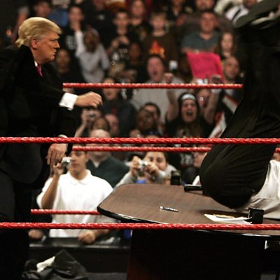 As G7 countries gather for trade talks in Quebec, could they gain some tips on how to fight back against the US steel tariffs from one of President Trump's favourite "sports" - WWE pro-wrestling? Manuela Saragosa gets the views of Financial Times columnist and editor Rana Foroohar, and of William Alan Reinsch of the Washington DC think tank the Centre for Strategic and International Studies. Plus Adrienne Murray gathers the rather mixed feelings of Trump voters about the US President's trade tactics in the rusty steel town of Warren, Ohio. (Picture: Donald Trump pushes WWE chairman Vince McMahon over, in the ring at a Wrestlemania event; Credit: Sam Greenwood/WireImage for World Wrestling Entertainment, Inc)