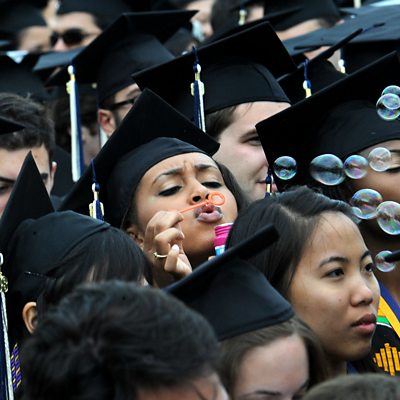 What happened to those who graduated straight into the worst financial and economic crisis since the Great Depression? Kim Gittleson is one of them, and she goes in search of three others who - like her - found their career prospects straight out of university blighted by a disaster not of their making. Are they angry? Or did they actually learn some useful life lessons unique to their generation? And how long a shadow has the grim milestone in financial history cast over their financial wellbeing and their ability to have families? Professor of sociology Kenneth Johnson of the University of New Hampshire and Lowell Ricketts of the St Louis Federal Reserve provide some of the answers. (Picture: Students at a George Washington University graduation ceremonies in 2008. Credit: The Washington Post/Getty Images)
