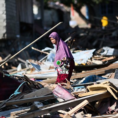 Tsunamis, earthquakes and a sinking capital - not all of Indonesia's problems are down to Mother Nature. Jonathan Bithrey reports from this blighted archipelago on the Pacific ring of fire. 14 years after the Indian Ocean tsunami, why was the country so ill-prepared for the tidal wave that hit Palu this week? And what is being done to stop Jakarta slowly sinking into the sea under the weight of poor planning and overdevelopment? (Picture: A woman looks for salvageable items among the debris in following the earthquake in Sulawesi; Credit: Jewel Samad/AFP/Getty Images)