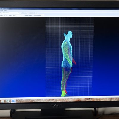 Will online shopping and AI combine to kill the high street clothing store? Ed Butler gets himself digitally measured up in order to try on outfits in cyberspace, with the help of Tom Adeyoola, founder of virtual browsing business Metail. Meanwhile Julia Boesch - who runs Outfittery, one of Europe's biggest online fashion retailers, out of her office in Berlin - explains how artificial intelligence is enabling her company to provide customers with the kind of individualised style advice they would normally find in a bespoke tailors. So is the roll-out of AI-enhanced phone-based services going to revolutionise the way we buy our attire? Yes, says Achim Berg of consultants McKinsey - but not quite yet. (Picture: Body scan to provide exact measurements at custom tailoring shop Alton Lane in Washington DC; Credit: Marvin Joseph/The Washington Post via Getty Images)