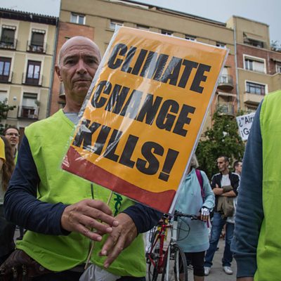 To follow the world's headlines these days - from fake news to murderous terror attacks, from disease pandemics to global warming - you might be forgiven for thinking the world is becoming a pretty scary place. But is it really? Harvard University cognitive psychologist and author Steven Pinker tells us that is measurably not the case. As he argues in his new book Enlightenment Now, we are in a golden age of human existence. But, David Edmonds meets academics who are putting Pinker's ideas to the test, concluding that with climate change and overpopulation, there is a 10% chance of humans not surviving the 21st Century. (Photo: Activist at a climate change protest in Spain. Credit: Getty Images)