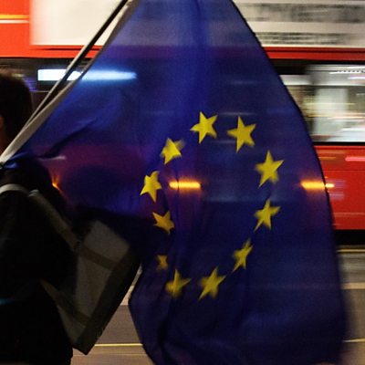 A continued political crisis in the UK means more uncertainty for businesses. We hear from the boss of a manufacturing company in Birmingham and Nicole Sykes, head of EU negotiations at the UK business group the CBI, as well as the BBC's Rob Watson in Westminster and Adam Fleming in Strasbourg. (Photo: A protester carries an EU flag in London, Credit: Getty Images)