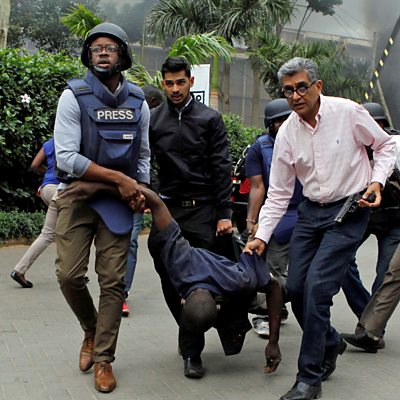 At the scene of the Islamist militant group al-Shabab’s attack in Nairobi, our correspondent Tomi Oladipo discovers that some people there had witnessed terror before. One of them is a man who rescued people from both this week’s attack, and another al-Shabab attack on Nairobi’s Westgate shopping mall back in 2013. Pascale Harter introduces this and other stories from correspondents around the world. Nick Sturdee examines the split between the Ukrainian and Russian branches of the Orthodox Church and has a strange encounter involving a black-robed priest, alleged KGB stooges and a mysterious man in a white car. Rahul Tandon finds out that despite India being one of the largest economies in the world, there just aren’t enough jobs to go round. He meets two men who are amongst 19 million applicants going for 67,000 job vacancies on India’s state run railways. Last year Emmanuel Macron did something no previous French President has, he admitted that the government had put a system in place that allowed torture to be committed against Algerians, during the Algerian war of independence from France, a brutal conflict which went on from 1954-1962. Charlotte McDonald meets a veteran who witnessed this torture, and has found a positive way to come to terms with what happened. (Image: Rescuers and journalist, Tomi Oladipo, evacuate an injured man from the DusitD2 hotel in Nairobi. Credit: REUTERS/Njeri Mwangi)