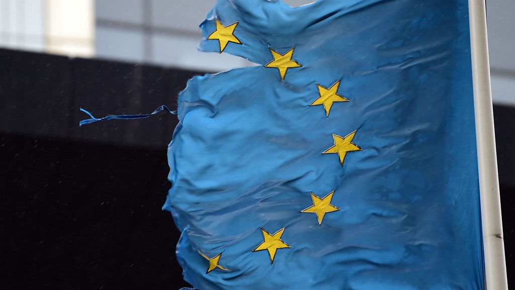 "The fragility of the EU is increasing," says EU Commission chief Jean-Claude Juncker, and, "the cracks are growing in size." The cracks appear in many forms. The German Chancellor, Angela Merkel says migration is the issue that "could decide the EU's fate." Her French counterpart, President Emmanuel Macron, wants urgent economic reform and a "profound transformation" of the EU. His solution in part is to "give Europe back to its citizens." But what do European citizen want? Some want out, as seen in Brexit. Many others don't like the way the EU is currently run. That's behind the rise of Eurosceptic governments in Hungary, Poland, and now Italy. Can the gap be closed between French hopes and German fears? Who has the will and the wherewithal to reform the EU before another political or economic crisis engulfs it? And if no change comes is the EU's very survival at risk? (Photo: EU flag billows all tattered and torn. Credit: Emmanuel Dunand/AFP/Getty Images)
