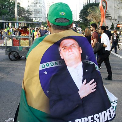 This weekend, if the polls are right, Brazilians are expected to elect an obscure far-right politician as their next president. Jair Bolsonaro has spent over 20 years in Congress in a variety of fringe parties to very little effect. Now he is promising to root out the corruption that's endemic in Brazilian politics and crack down on crime. Brazil has some of the highest murder rates in the world and Bolsonaro wants to loosen gun laws and make it easier for the police to shoot to kill criminals. His opponents accuse him of supporting extra-judicial killings as well promoting homophobic and misogynistic views. Ritula Shah and a panel of expert guests looks at what Jair Bolsonaro is proposing for Brazil. How has he come to prominence? Who are his backers? And can a man who speaks so fondly of Brazil's military dictatorship really be trusted with its democracy?