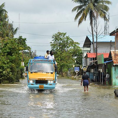 Indian paddle surfer Rocha Chacko Mathew used his expertise to save people stranded in their homes during the recent flooding in Kerala. He and his friends headed to the worst affected areas and pulled over a thousand people to safety. Lewis Miller is a floral designer with a difference. He secretly leaves flower arrangements in rubbish bins and other surprising places around New York to give a little something back to the city. Our reporter Tara Gadomski went with him on one of his “flower flashes.” British woman Tasha Bishop was born without a womb meaning she would never have a period, would never be able to carry her own children and having sex would be difficult. She was diagnosed with Mayer-Rokitansky-Küster-Hauser syndrome and struggled to come to terms with her condition. However, she decided to turn her experiences into something positive by launching a business called ‘The Pants Project’ that uses underwear to empower women. Image: A mini-truck makes its way down a flooded road in Kerala, India Credit: MANJUNATH KIRAN/AFP/Getty Images