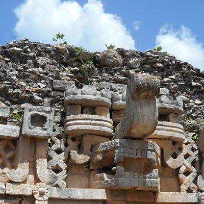 Drought was the reason for the demise of the Mayan civilization. Scientists have been analysing ancient lake sediments on the Yucatan Peninsular in Mexico to determine the extent of the dry spell that caused catastrophic crop losses, which contributed to the demise of the Lowland Classic Mayan civilization. Kilauea Volcano As the Kilauea volcano continues to erupt and spew molten lava over the Island of Hawaii, volcanologists from the UK are setting up monitors on the slope in the hope of understanding the shield volcano better. They are measuring the micro-earthquakes and are hoping to record the moment the volcano quiets. Eukaryote Genome The Earth Biogenome Project aims to sequence the DNA of all the planet's eukaryotes, some 1.5 million known species including all known plants, animals and single-celled organisms. The ambitious project will take 10 years to complete and cost an estimated $4.7 billion. Air pollution in Africa How the residents of Mukuru in Nairobi are trying to tackle the growing health problems caused by particulate air pollution. Presenter: Roland Pease Producer: Fiona Roberts Image: Mask of the Maya rain God 'Chaac' on a building at Labná in the Puuc region of the northern Yucatán Peninsula. Credit: Mark Brenner.