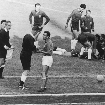 In the latest in a World Cup series, we go back to 1962 and probably the most violent match in the history of the tournament. Described by BBC commentator David Coleman as a "stupid and disgusting exhibition", the confrontation between Chile and Italy was marred by spitting, kicking and punch-ups between the players. It is now known as the Battle of Santiago. Richard Murie talks to the former Chilean defender, Humberto "The Cheetah" Cruz. (Photo: The aftermath of a heavy challenge in the Battle of Santiago. Credit: Getty Images)