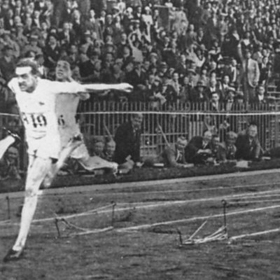 In 1924, the British sprinter, Harold Abrahams, won the 100 metres at the Paris Olympics - a famous victory depicted in the film, Chariots of Fire. Simon Watts tells his story using interviews in the BBC archives. (Photo: Harold Abrahams winning the 1924 Olympics. Credit: Getty Images)