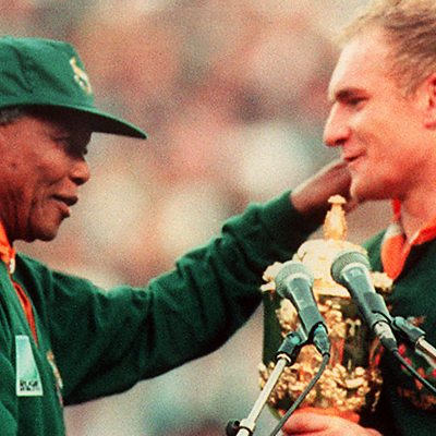 In 1995, post-apartheid South Africa hosted, and won, the Rugby World Cup. It was a hugely unifying moment for the country. Hear from Francois Pienaar, captain of the victorious Springboks team about what it meant to him, and to the nation. Image: Nelson Mandela presents Francois Pienaar with the Rugby World Cup trophy at Ellis Park in Johannesburg, 24 June 1995 (Credit: Philip Littleton/AFP/Getty Images)
