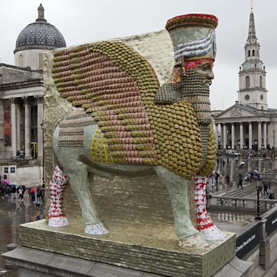 On this week’s Cultural Frontline we explore the artistic response to the continuing conflicts in Iraq and Syria. We join the American artist Michael Rakowitz in London’s Trafalgar Square, as he unveils his new work, a reimagining of an ancient Iraqi artefact, which was destroyed by the so-called Islamic state. The audio investigator and sound artist Lawrence Abu Hamdan tell us why he has helped former detainees of a notorious Syrian prison to create “ear-witness testimonies” of their experiences. The acclaimed Chinese artist Ai Weiwei talks about why he continues to tell the stories of refugees through his work and the Indian singer Harshdeep Kaur shares the story of the artist that inspires her to make music. Presented by Tina Daheley. Picture: Michael Rakowitz's sculpture The Invisible Enemy Should Not Exist on Trafalgar Square's Fourth Plinth in London. Picture Credit: Gautier DeBlonde