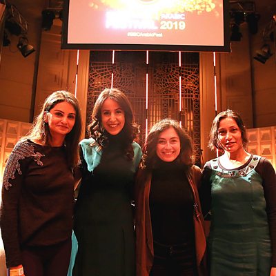 Recent years have seen a new wave of female talent and women-focused stories in Arabic cinema. But what are the types of stories being told and can the portrayal of these stories help influence society across the region? We explore the opportunities and challenges faced by women working in front of and behind the camera. In this current era of #MeToo and #TimesUp, we discuss these and other challenges that arise when showing women on screen, as well as those faced by women within the industry. In front of a live audience in the BBC Radio Theatre, the award-winning journalist, Nawal al-Maghafi, hosts a panel of leading and emerging filmmakers from the region including the award winning director Annemarie Jacir, the actor and film maker Ahd Kamel, one of Morocco’s emerging directorial talents Mariakenzi Lahlou and the film writer and academic Shohini Chaudhuri. Presented by Nawal al-Maghafi Image: Ahd Kamel, Nawal al-Maghafi, Mariakenzi Lahlou and Shohini Chaudhuri at the BBC Radio Theatre in London. Credit: BBC