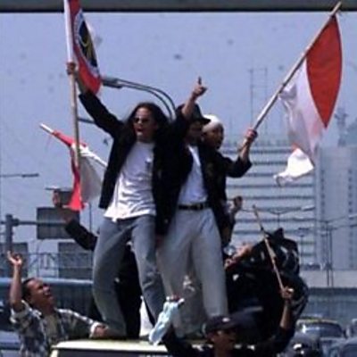 In 1998, the Indonesian dictator, President Suharto, resigned after 31 years in power. He stood down in the wake of nationwide demonstrations sparked by the killing of four student protestors. We hear from Bhatara Ibnu Reza, who was with one of the students when he died. Plus, how a Pakistani theatre company took on the dictatorship of General Zia ul-Huq; the landmark Holocaust documentary Shoah; and the day lesbian protestors targeted the BBC news studio. Photo: Students celebrate outside the Parliamentary buildings, Jakarta after Indonesian President Suharto announced his resignation. Credit: Adam Butler/PA