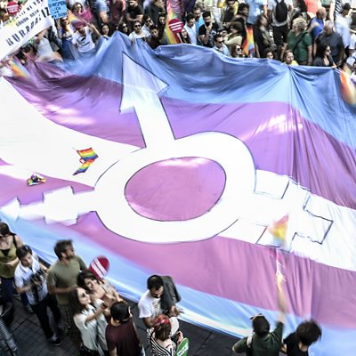 In late December 2017, one of the world’s leading neurobiologists died of pancreatic cancer. His name was Ben Barres. He was an extraordinary scientist, advancing our understanding of how the brain works, in particular how certain cells in the brain may contribute to degenerative brain diseases like Alzheimer’s and Parkinson’s. He had also lived the last 20 years of his life as a transgender man. He used his unique perspective of having ‘lived in the shoes of a woman and…the shoes of a man’ to become an outspoken opponent of gender bias. As the voice of the transgender community continues to grow in influence, what can wider society learn from people who’ve been in this rare position of living life as both a perceived man and woman? What does their experience tell us about the nature of gender bias? And does it help us fix it? (Photo: People hold a giant transgender flag at a gay parade. Credit: Bulent Kilic/AFP/Getty Images)