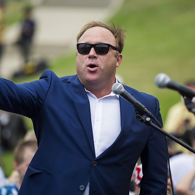 An update on the people behind a paranoid conspiracy theory. Twenty-six people, mostly young children, died at Sandy Hook Elementary School in 2012. They were the victims of a man named Adam Lanza, who killed himself after the slaughter. It was a shocking tragedy, even in a country used to regular gun violence. Soon false rumours began to circulate online, that the attacks were staged using actors. Although they had no basis in truth, hundreds of YouTube videos, blogs, and tweets repeated the conspiracy theories. And the rumours were pushed by an alternative media mogul named Alex Jones. His online news site Infowars has millions of listeners and viewers. He’s interviewed President Trump, who has repeated Infowars stories on his Twitter feed and in speeches. One of the fathers who lost their children in the shooting was Lenny Pozner, whose son Noah was killed. As the “hoaxers” went to greater extremes to spread their fake news – even targeting grieving parents - Lenny Pozner led the online fight back. In April, the parents of Noah Pozner filed a defamation lawsuit against Jones. And now, amid concern about conspiracies and “fake news”, big social media companies have shut down Infowars and Alex Jones accounts. This is an update of a story that was originally broadcast in March 2017. Presenter: Mike Wendling Reporter: Sam Judah Studio managers: James Beard and John Scott Photo Caption: Alex Jones, founder of Infowars Photo Credit: Getty Images