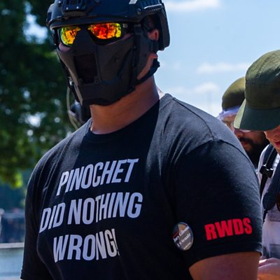 Since the election of Donald Trump, there’s been a disturbing wave of street violence across America. The epicentre is Portland, Oregon, a place better known for its chilled out hipster lifestyle – but which has been the scene of dozens of far-right marches and rallies. Those events often result in arrests and violence. BBC Trending went there to meet two activists who have been on opposite sides of the fighting. Anti-fascist activist Luis Enrique Marquez and Rob Cantrall, member of the far-right Proud Boys group, have agreed to meet for a discussion. But will they have any common ground to bridge the political divide? Presenter: Mike Wendling Producers: Linda Sills & Natalia Zuo Editor: Jeremy Skeet (Photo Caption: A far-right protester in Portland / Photo Credit: Getty Images)