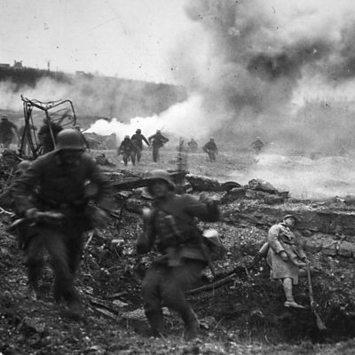 In early 1918, Germany launched a huge offensive on the Western Front in a last great gamble to win the war. Following Russia's withdrawal from the war, Germany could move up to a million soldiers from the Eastern Front to the West to launch a decisive attack. Their plan was to break through British and French lines and force an end to the war, before American power could bolster the Allied cause. They came close to succeeding. Using recordings from the BBC Archive, we hear from German and British soldiers who faced each other in the spring of 1918. Photo: German troops advance in the sector near Villers-Bretonneux during Germany's Spring Offensive 1918. (Hulton Archive/Getty Images)