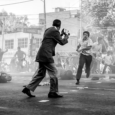 Alfonso Cuarón's critically acclaimed film Roma portrays a student massacre that took place in México City in 1971. The Corpus Christi massacre, known locally as the Halconazo, sent shock waves throughout México. A paramilitary group trained by the Army attacked students as they demonstrated against the government, leaving about 120 people dead. María Elena Navas speaks to Rosa Maria Garza Marcué and Jesús Martín del Campo, who were among the protesters that day. Photo: The massacre scene in Roma (Netflix)