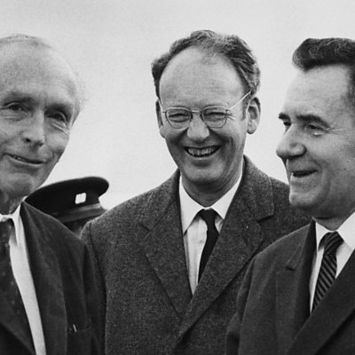 In 1971 during the Cold War, the UK expelled 90 Soviet diplomats suspected of spying. They'd been allowed into Britain in an attempt to improve relations, but it had been discovered that they'd been carrying out espionage instead. George Walden was a young diplomat on the Soviet desk in the British Foreign Office at the time. Photo: British Foreign Secretary Alec Douglas-Home (left) shakes hands with Soviet Foreign Minister Andrei Gromyko (right) at Heathrow Airport, 26th October 1970. (credit: Ian Showell/Keystone/Hulton Archive/Getty Images)
