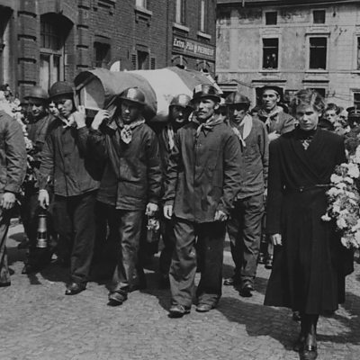 In August 1956, a fire at a coal mine in Belgium killed 262 people. The tragedy caused grief across Europe, but particularly in Italy because more than half the dead were Italian migrants. Simon Watts brings together the memories of Lino Rota, a rescue worker at Marcinelle, and Rosaria di Martino, whose family moved to Marcinelle from a village in Sicily. The interview with Lino Rota was conducted by Italian journalist, Paolo Riva. PHOTO: A funeral at Marcinelle in 1956 (Getty Images)