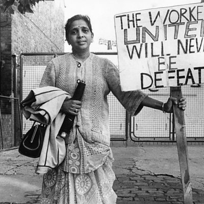 In 1976 South Asian women workers who had made Britain their home, led a strike against poor working conditions in a British factory. Lakshmi Patel was one of the South Asian women who picketed the Grunwick film-processing factory in north London for two years, defying the stereotype of submissive South Asian women. They gained the support of tens of thousands of trade unionists along the way. Lakshmi talks to Farhana Haider about how the strike was a defining moment for race relations in the UK in the 1970s. (Photo: Jayaben Desai, leader of the Grunwick strike committee holding placard 1977 Credit: Getty images)