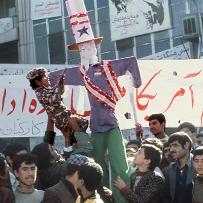 In 1979 young revolutionaries stormed the US Embassy in Tehran. 52 Americans were taken captive and held hostage for 444 days. Barry Rosen was one of the hostages. In 2009 he told his story to Alex Last. This programme is a rebroadcast. Photo: Boy in camouflage points a toy pistol at an effigy of US President Carter during a demonstration outside the US Embassy, 18 November 1979. (Credit:STAFF/AFP/Getty Images)