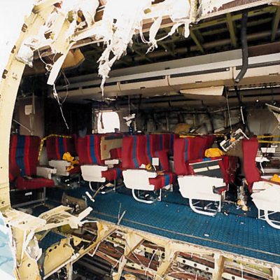 Nine passengers were sucked out of a plane when a cargo door opened mid-flight over the Pacific. United Airlines Flight 811 was flying from Hawaii to New Zealand in February 1989 when the accident happened. In 2012 Claire Bowes heard from two passengers on board the plane. This programme is a rebroadcast. Photo: The damaged side of the plane. Credit: Courtesy of Bruce Lampert.