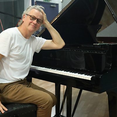 British songwriter Guy Chambers was struggling to make ends meet and couldn't afford to repair his leaking roof when he got a phone call from pop star Robbie Williams. Robbie asked him if he could write "dirty pop". Guy said yes, and Robbie showed up at his flat. Together they co-wrote some of the most enduring British pop songs of the 1990s. Image and credit: Songwriter Guy Chambers sitting at a piano