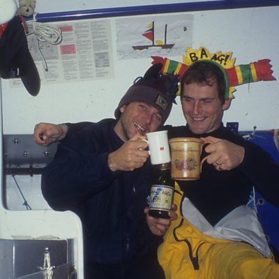 One round the world sailing race, ten years of preparation and 48 hours stranded in the icy waters of the Southern Ocean. A dramatic tale of adventure, disaster and unexpected friendship as an Englishman and a Frenchman attempt one of the most difficult physical feats...and nature intervenes. Presenter: Datshiane Navanayagam Image: (L) Raphaël Dinelli and (R) Pete Goss. Credit: Photo courtesy of Pete Goss