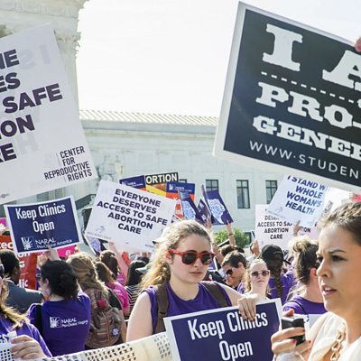 Could abortion be banned in the United States? Since the election of President Trump the question has taken on a new urgency, for both sides of America’s abortion wars. Philippa Thomas travels to two states which perfectly capture the debate – Texas and Kentucky – to explore, the past, present and future of this most controversial debate. In the first programme Philippa visits abortion clinics in Texas to hear from women who have had abortions, and protesters who would like to stop them, about why this issue is so important. She hears from a doctor who performs abortions, a state lawmaker who would like to stop him, and an activist who wants to remove the shame about abortion. In the state capital, Austin, Philippa meets Sarah Weddington, the lawyer who argued the famous Roe versus Wade case which made abortion legal across America, and she hears how the reaction against that judgement helped create modern conservatism, modern liberalism, and elect President Trump. Excerpts from Sarah Weddington’s oral argument in the Roe versus Wade case are provided by Oyez, a free law project by Justia and the Legal Information Institute of Cornell Law School, at www.oyez.org. Photo: Pro-choice and pro-life activists demonstrate on the steps of the United States Supreme Court, 2016. Credit: Pete Marovich/Getty Images)