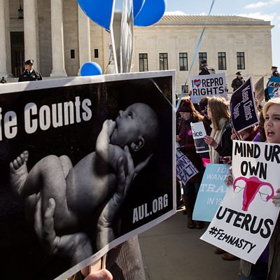 Could abortion be banned in the United States? Since the election of President Trump the question has taken on a new urgency, for both sides of America’s abortion wars. Philippa Thomas travels to Kentucky, where a legal case is under way aimed at closing that state’s last clinic. She visits the lawyer trying to keep it open, and the opponents fervently praying for it to close. And she is invited to a smart suburb to see for herself one answer to the question often asked of anti-abortion activists: ‘well, what would you do?’ (Photo: Pro-choice advocates (right) and anti-abortion advocates (left) rally outside of the Supreme Court, Washington DC. Credit: Drew Angerer/Getty Images)