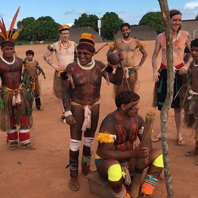 Many anthropologists and researchers have visited the indigenous peoples of the Amazon to analyse their ways of life and culture. But what would these people want to say to us? Tribal leader Takuma Kuikuro guides us through a day in the life of his village, from dawn to dusk. He shares his vision of the future for the Kuikuro people who live in the upper reaches of the Xingu River. As the day progresses we find that it is not just traditional rituals of body-painting and dancing and the daily tasks of fishing and cooking. Even in this remote corner of the Amazon region technology, including social media, has arrived and the youth are enthralled. At dawn Takuma starts up newly introduced machinery which is reducing the workload of women preparing food. He scoots off on a motorbike, past a group of youngsters enjoying their morning game of football. He goes bathing and fishing as well as taking part in some of the important rituals that form part of daily life. But by the evening, a generator is humming and the young generation are either watching TV or on their phones checking Facebook. Is all this technology a challenge to the village or will it enhance their lives? To outsiders who want them to preserve their heritage, they are quick to point out that none of them want to live in a museum. Jerry Brotton introduces this programme which is made with the permission of AIKAX – the Association of Indigenous Peoples of the Upper Xingu. (Photo: Kuikuro people of Brazil)