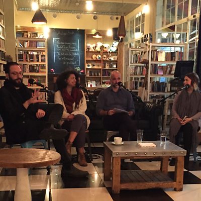 Storytelling is a revered and longstanding tradition in Lebanese culture which is kept alive in the bustling cafes and bookshops of Beirut. Rami Ruhayem meets with a panel of poets and writers to talk about their stories; from the plight of Syrian refugees, to being an Arab who writes in English, to the rise of LGBTQ storytelling nights. Find out what it’s like to be a writer in this schizophrenic mix of tradition and liberalism. (Photo: World Book Cafe panel)