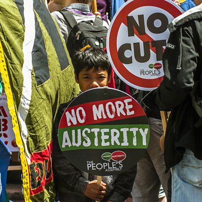 Did Governments’ handling of the 2008 financial crisis – when some chose to implement austerity and some didn’t - make things better or worse? Ian Goldin, professor of Globalisation and Development at Oxford University, visits Illinois in the US to find out how people were affected by the collapse in the housing market. He also talks to Christine Lagarde – the head of the International Monetary Fund – about how austerity measures were implemented in Europe. And Ngozi Okonjo-Iweala, the former Minister of Finance in Nigeria, talks about how the crisis was felt in Africa. Presenter: Ian Goldin Producer: Ben Carter (Photo: Child with banner, Credit: Getty Images)