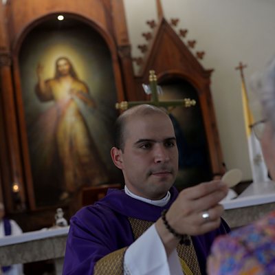 The laws around divorced Catholics receiving communion are both clear and strict. But recently Pope Francis has clouded the issue with a number of pronouncements, giving millions of divorced Catholics hope that they will be able to receive the sacrament at mass. Catholics who divorce in civil law are still married according to the law of the church, and any relationship they enter into is adulterous. And as that's a mortal sin, they cannot take communion. Adrian Chiles hasn’t married again after he divorced, but hasn’t ruled it out. He knows, though, that once that happens, he won’t be able to receive the most important element of his faith, and that bothers him. Adrian begins by meeting Cristina Odone, a Catholic journalist who tells him how she cannot receive communion because she is married to a divorcee and how much this upsets her. He also meets two divorcees who face having to get an annulment of difficult marriages. There are many Catholics who want the law upheld, and many others who have been given hope by the Pope. Adrian uses his own situation to explore this thorny subject which is causing division in his church. Presenter: Adrian Chiles Producer: Henrietta Harrison Photo: A priest handing out communion during mass Credit: Getty Images.