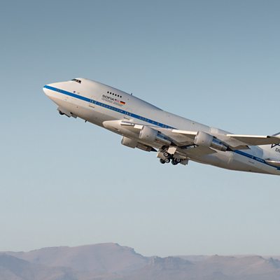 On this mission, SOFIA is setting out to study Titan, Saturn’s biggest moon, by flying into the faint shadow that it casts as it blocks the light from a faraway star. It’s a phenomenon called an occultation, and if the mission succeeds, it will reveal new details about Titan’s atmosphere. SOFIA is a very unusual observatory. It is a 747 aircraft with a hatch in the side, which opens in flight to reveal a large, custom-built telescope – carefully engineered to work inside a moving jet plane. Its full name is the Stratospheric Observatory for Infrared Astronomy, and it’s a joint project of Nasa and the German space agency, DLR. The catch? That shadow is moving across the earth at 22 kilometres per second. Join Dr Jonathan Webb from the ABC in Australia for episode one of The Chase - a special four-part series about science on the run. (Photo: SOFIA is a heavily modified 747SP which was acquired by Nasa in the mid-1990s after spending 20 years as a passenger jet. (Credit: Wayne Williams)