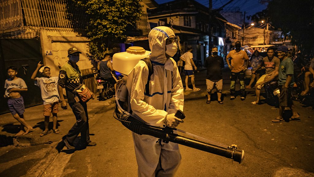 What is life like under lockdown in some of the world’s poorest cities? We hear from Nairobi and Manila, two cities facing tough measures to combat Covid-19. But is the cure worse than the disease? We’ll also hear from Mohammed El-Erian, chief economic adviser at Allianz, who is concerned about the impact on the streets if the whole economy freezes up. Producer: Frey Lindsay (Picture: A worker sprays disinfectant to curb the spread of COVID-19 in a residential area on March 19, 2020 in San Juan, Metro Manila, Philippines. Picture credit: Ezra Acayan/Getty Images)