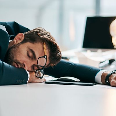 The demands of the working day and our 24-hour economy mean many of us don't get the recommended seven to eight hours sleep a night. Experts say all that sleep deprivation comes at an economic cost. Manuela Saragosa looks at the business case for sleep. Contributors: Danielle Marchant, Executive Coach. Matthew Walker, Professor of Neuroscience and Psychology at the University of California, Berkeley, and founder and director of the Center for Human Sleep Science. (Picture: Tired young businessman sleeping on his desk inside of the office during the day; Credit: PeopleImages/Getty Images)