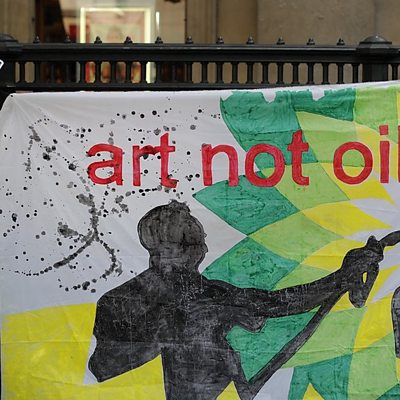 Should galleries take money from the likes of big oil? Ed Butler speaks to Jess Worth of the UK pressure group Culture Unstained, and Claire Fox, director of the UK's Academy of Ideas. And British novelist, art critic and broadcaster Sarah Dunant explains the well-established history of cash and corruption in the arts. Hong Kong billionaire philanthropist James Chen says donors need to engage with the issues. (Photo: Protesters outside the National Portrait Gallery in London, Credit: Getty Images)