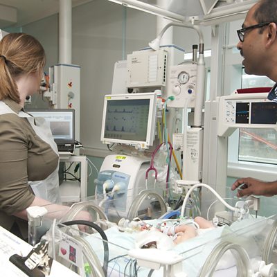 Claudia Hammond visits the Royal Society Summer Science Exhibition. Every year a minority of births goes wrong and the baby is deprived of oxygen, which can lead to long-term brain damage and conditions such as cerebral palsy. Early treatment can reduce the likelihood of permanent disability or even death, so a team at University College London have now developed a new portable device which uses harmless infra-red to detect signs of brain injury in newborn babies, minutes after birth. It is called Cyril and consultant neurologist Subhabrata Mitra and Dr Ilias Tachtsidis, Reader in Biomedical Engineering, demonstrate it to Claudia. Antibiotic-resistant bacteria are a well-known problem, with one insidious thriving place being medical implants, where they form impenetrable biofilms. But there could be a solution from scientists at Nottingham University. Kim Hardie, a molecular microbiologist, is part of a team that has developed special slippery coatings for biomedical devices, such as catheters, that stop bacteria attaching and sticking in the first place. It is hoped these super biomaterials will help in the fight against super bugs, which has huge implications for infection rates in hospitals globally. It is estimated that one in nine people experience some form of breathlessness, which is most common in conditions such as heart failure, lung disease, panic disorder and Parkinson’s. But there are also significant numbers of people who suffer from breathlessness which cannot be explained. A team at Oxford University hypothesise this might be driven by networks in the brain. So using brain scans and computational modelling, Breathe Oxford has examined breathlessness in athletes, healthy people and those with chronic lung disease, seeking clues as to why some individuals become disabled by their breathlessness, while others with the same lung function live normal healthy lives. Claudia discusses this relationship between breathlessness and brain perception with lead researcher and anaesthetist Professor Kyle Pattinson and research scientist Sarah Finnegan. They also, using a ‘Steppatron’, demonstrate what it is like to live with a chronic lung condition. Mirror-touch synaesthesia is a rare type of synaesthesia where people can actually feel something that they can see being done to someone else. For example they might seem to feel a brush on their hand whilst watching someone else having their hand stroked. Dr Natalie Bowling from the University of Sussex researches this condition. It is estimated that 30% of the population could experience some form of synaesthesia and Claudia also meets Kaitlyn Hova, a violinist with visual-auditory synaesthesia. She demonstrates her violin, which lights up with different colours according to how she sees the notes. (Photo caption: Members of the MetaboLight team working together to develop novel light technologies to assess brain injury severity in newborns within hours after birth - credit: MetaboLight) Producer: Helena Selby