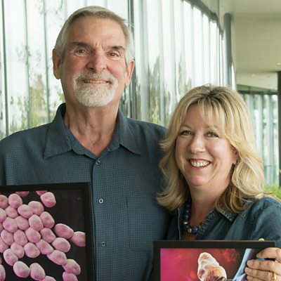 When Tom Patterson caught a superbug infection in 2015, he thought his life was over. The antibiotics had stopped working, he was in a coma and doctors had given up hope. But his wife - scientist Steffanie Strathdee - went on an international medical quest to save him. Tom and Steffanie have written a book about their experience - 'The Perfect Predator: A scientist's race to save her husband from a deadly superbug'. Isabel and Susana González hunt percebes, also known as gooseneck barnacles. They're rather ugly crustaceans that can fetch thousands of dollars per kilogram at auction. To collect them, the González sisters must traverse slippery rocks along the Spanish coastline where they risk falling and drowning. But they also faced death threats when they stood up to patriarchy in their industry. Outlook's Pablo Esparza Altuna went to meet them. Picture: Tom Patterson and Steffanie Strathdee holding pictures of bacteria and phages Credit: USCD Health