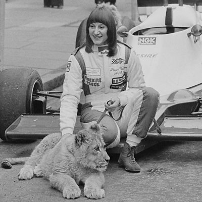 In April 1980, South African racing driver Desiré Wilson became the only woman to win a Formula One event when she took the chequered flag at Brands Hatch. But despite her obvious talent, Wilson faced opposition from some male drivers throughout her career and never attracted the sponsorship she needed for a proper shot at a Grand Prix career. She talks to Ashley Byrne. The programme is a Made-In-Manchester Production. PHOTO: Desiré Wilson posing with a lion cub in 1979 (Graham Morris/Evening Standard/Hulton Archive/Getty Images)