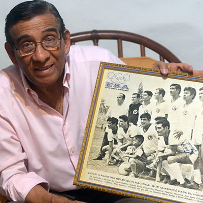 The World Cup qualifiers that preceded a brief but bloody conflict between El Salvador and Honduras in the summer of 1969. The war between the Central American neighbours was over land rights and a long-running border dispute. Mike Lanchin has been hearing from the former captain of the Salvadorean football team, Salvador Mariona. Photo: Salvador Mariona shows a picture of the El Salvador national team during the World Cup Mexico 1970 (MARVIN RECINOS/AFP/Getty Images)