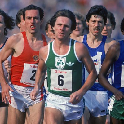In 1994, the legendary Irish middle-distance runner Eamonn Coghlan came out of retirement in a bid to become the first person over forty to run a sub-four minute mile. He talks to Ashley Byrne. The programme is a Made-In-Manchester Production. PHOTO: Eamonn Coghlan, centre (Getty Images)