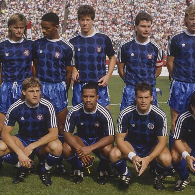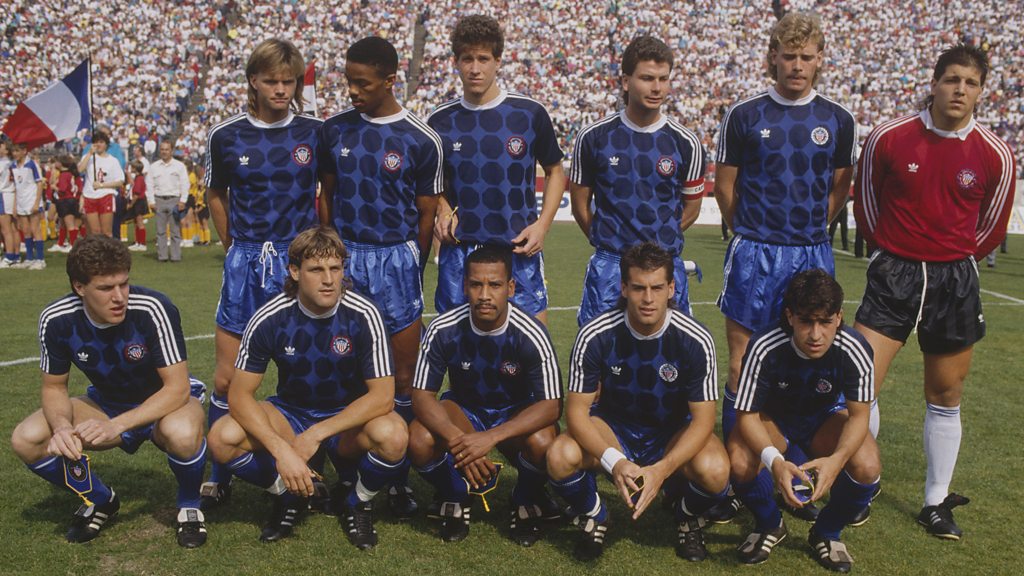 In November 1989, the USA qualified for the football World Cup for the first time in the modern era with a nail-biting 1-0 away win in Trinidad and Tobago. The winning goal was a 30-yard screamer scored by Paul Caligiuri, one of the few professionals in the American team. It is credited with boosting the popularity of the game in the US, and was nicknamed “The Shot Around the World”. Paul Caligiuri talks to Ashley Byrne. (Photo: The US team at the 1990 World Cup. Credit: Getty Images)