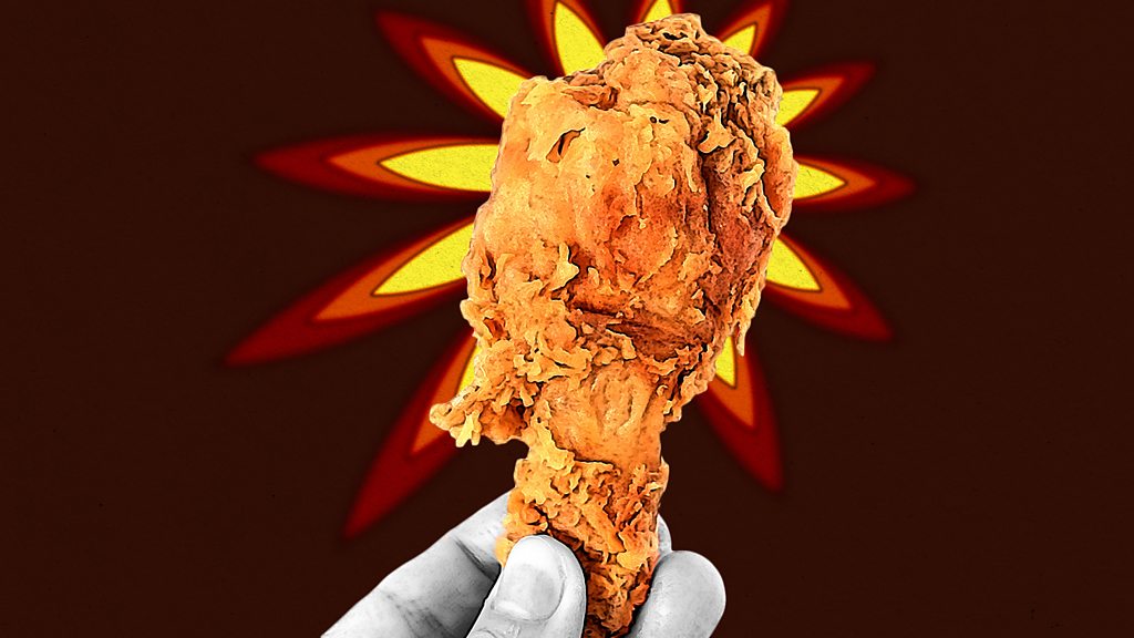 Fried chicken is loved the world over - it’s the most popular dish in global fast food, according to industry analysts, eclipsing even the burger. From Senegal to Singapore many countries have their own native twist on it, whether it’s covered in sesame seeds, battered in tempura or finished with a dunk in aioli. But what is it that makes fried chicken so appealing to so many different cultures? Graihagh Jackson speaks to three fried chicken shop owners from South Korea, the UK and South Africa to find out how battered poultry has come to achieve such global dominance. They explain how different cultures like their birds fried, how competitive the industry can be, and go deep into the science behind the perfect bite. We also learn how hard it can be to convince customers that fried chicken should be viewed as a gourmet meal, and priced accordingly, rather than a cheap, unhealthy snack. And how important is it to source the best possible meat, without going bust? Plus, is the smell of a deep fat fryer any good for your love life? (Picture: A hand holding a piece of fried chicken. Credit: Getty Images/BBC)