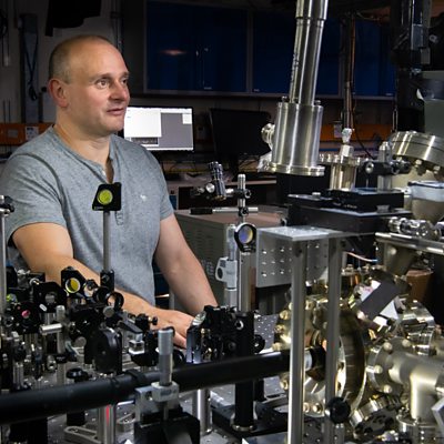 Quantum computers could transform our lives. Based on a branch of Physics that even Einstein found "spooky", the machines are still in their infancy. But governments and corporations are spending billions trying to turn them into workable technology. Neal Razzell finds out why by talking to four experts: Shohini Ghose, Professor of Physics and Computer Science at Wilfred Laurier University in Canada Stephanie Wehner, Professor in Quantum Information at Delft University of Technology in the Netherlands Winifried Hensinger, Professor or Quantum Technologies at the University of Sussex Jonathan Dowling, Professor of Theoretical Physics at the University of Louisiana and author of 'Quantum Technology - The Second Quantum Revolution' and 'Schrödinger's Killer App - Race to Build the World's First Quantum Computer'. Image: Professor Winfried Hensinger with a quantum computer prototype at the University of Sussex. Credit: Ion Quantum Technology Group, University of Sussex, UK.