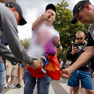 New laws are being passed across Poland taking aim at the LGBT community. They’ve been called “LGBT free zones” as a shorthand. While they don’t necessarily mean that lesbian, gay, bisexual and transgender people are being thrown into prison, they are having a chilling effect on the community. The laws have contributed to a more general climate of conflict and fear. In 2019, violence broke out at several equality marches after far-right groups held counter demonstrations. After one such clash, LGBT activists fought back with a hashtag campaign - which led to more protests on the streets. We meet the activists who are rallying support and the counter demonstrators who organise against them. And we find out whether young LGBT people in Poland are planning to leave the country – or stay put. Presenter: Mike Wendling Reporter: Ben Hunte Producer: Sean Allsop Picture caption: Anti-LGBT protesters burn a rainbow flag at a demonstration last year in Bialystok in Poland Picture credit: BBC
